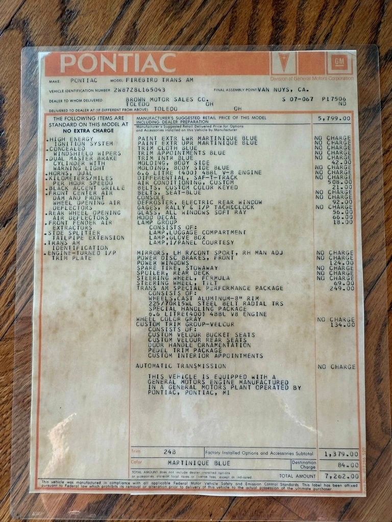 carefully this Trans Am has been preserved. Inside, the original