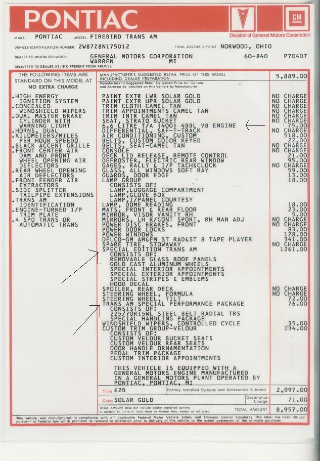 1978 Trans Am Y88 4 speed