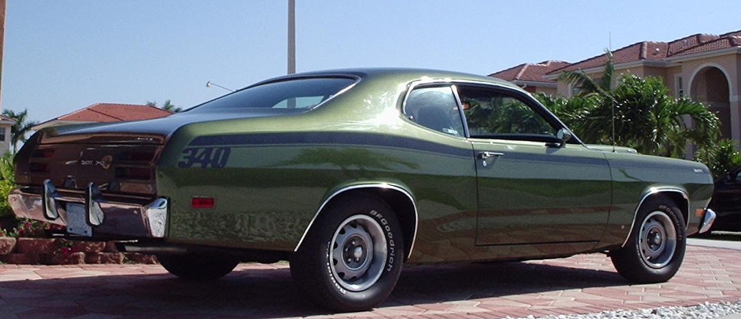 1971 DUSTER 340 4 SPEED (ORIGINALLY AUTO) CONVERSION DONE 20 YRS AGO WITH ALL CORRECT PARTS IE; HUMP AND SO ON. DATE CODED MOTOR AND 4 SPEED. ALL REBUILT WITH ABOUT 300 MILES ON MOTOR AND TRANS. CAR IS ORIGINALLY A BUCKET SEAT WITH CONSOLE AUTOMATIC. CAR DRIVES GREAT WITH NO ISSUES. THIS IS THE TIGHTEST A BODY I'VE EVER DRIVEN. I HAVE SEVERAL ONES SO I KNOW. BODY IS EXCELLENT. RUST FREE FLORIDA CAR. PAINT IS ABOVE DRIVER QUALITY. REPAINT DONE ABOUT 2 YRS AGO. IN BASECOAT ,CLEAR COAT. ALL A/C EQUIPMENT IS THERE BUT NOT WORKING RIGHT NOW. THIS IS YOUR CHANCE TO OWN A REAL H CODE DUSTER AT VERY REASONABLE PRICE. BY THE WAY THIS CAR COMES WITH ITS ORIGINAL MINT BUILD SHEET |
