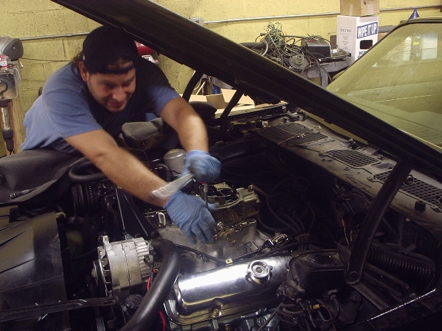Our head mechanic Carlos re installing the rebuilt carb