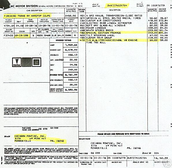 Windowsticker shows M21 4 speed transmision, Y82 Package and W72 engine, what else could you ask, this is the most desirable 77 model ever!