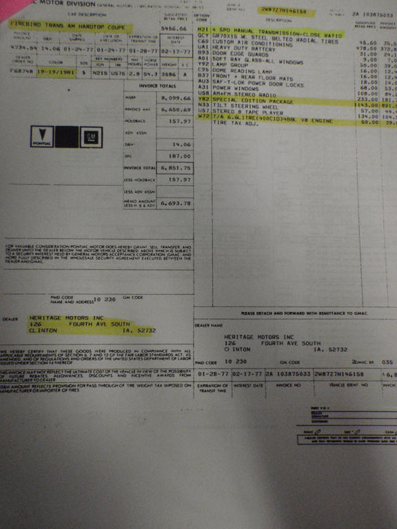 windowsticker proves car is Y82 with M21 4 speed